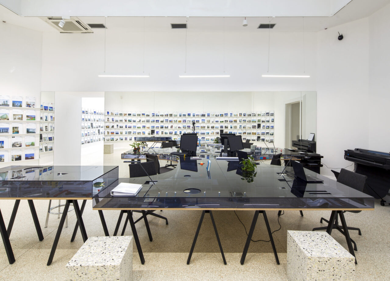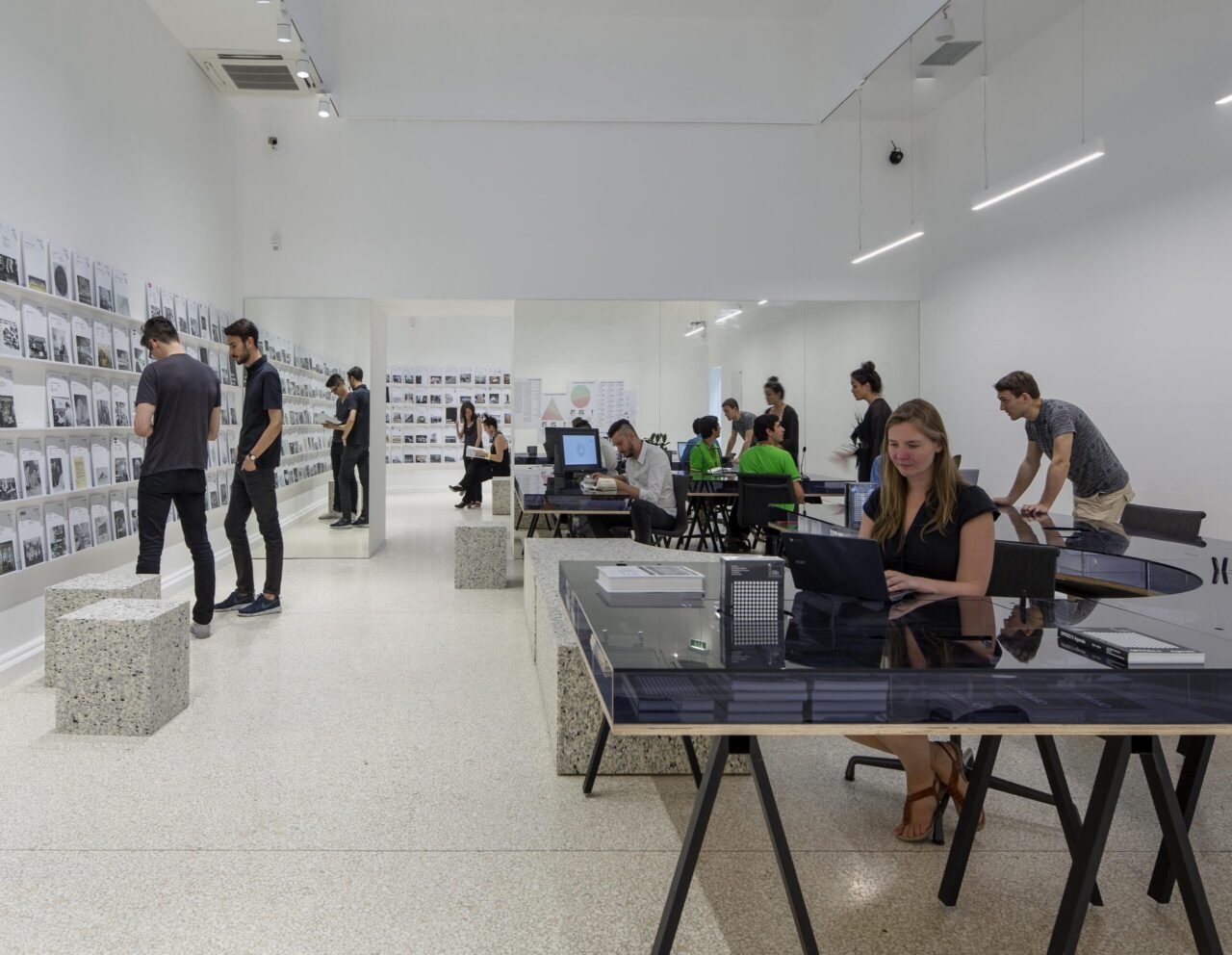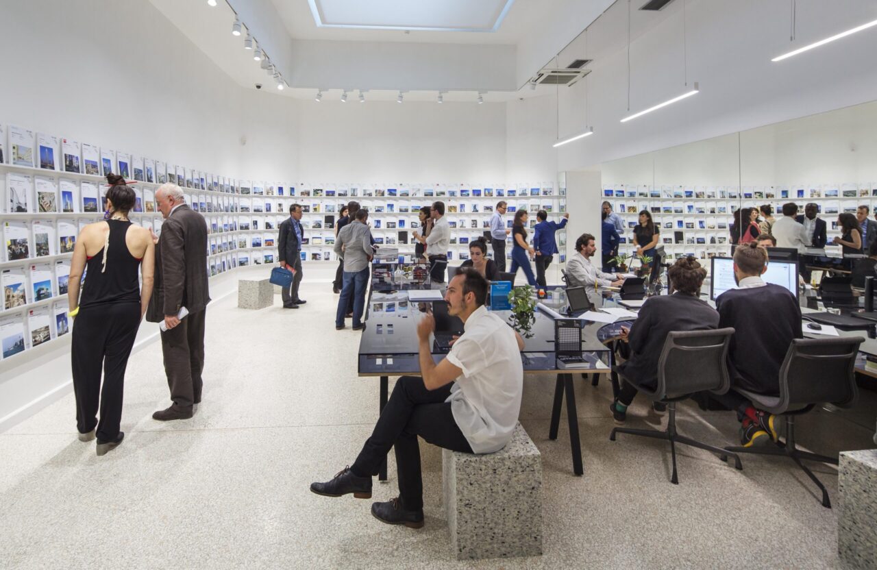 Occupying the US Pavilion at the 14th International Architecture Biennale in Venice from June 7 through November 23, 2014, OfficeUS presented a global history of the architectural office while mapping aspirations for its future. The exhibition contained an archive of nearly one thousand projects produced by US offices abroad between 1914 and 2014—the OfficeUS Repository—that located the intersection between the operations of US architecture firms and their international impact over the last century. An office of six partners worked within the Repository over the 25 weeks of the Biennale, in collaboration with global outpost offices and a series of visiting experts, with the mission to look backward and forward simultaneously, submitting historical material to contemporary critique while projecting alternative futures out of it. The chronologically organized project binders of the Repository were punctuated by a series of 25 OfficeUS Issues, outlining weekly investigations and debates based on pressing historical and contemporary questions. The project—both archive and office—served simultaneously as an archaeology of global architectural firms and a critical challenge to them.