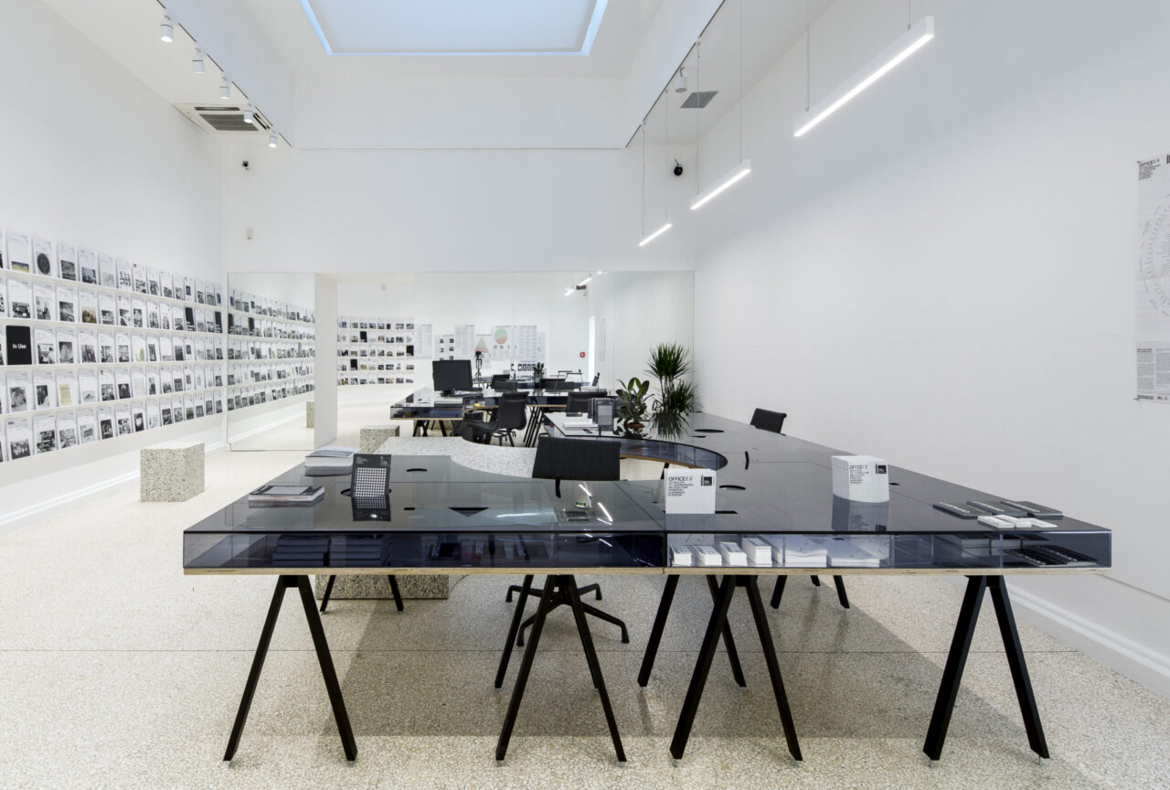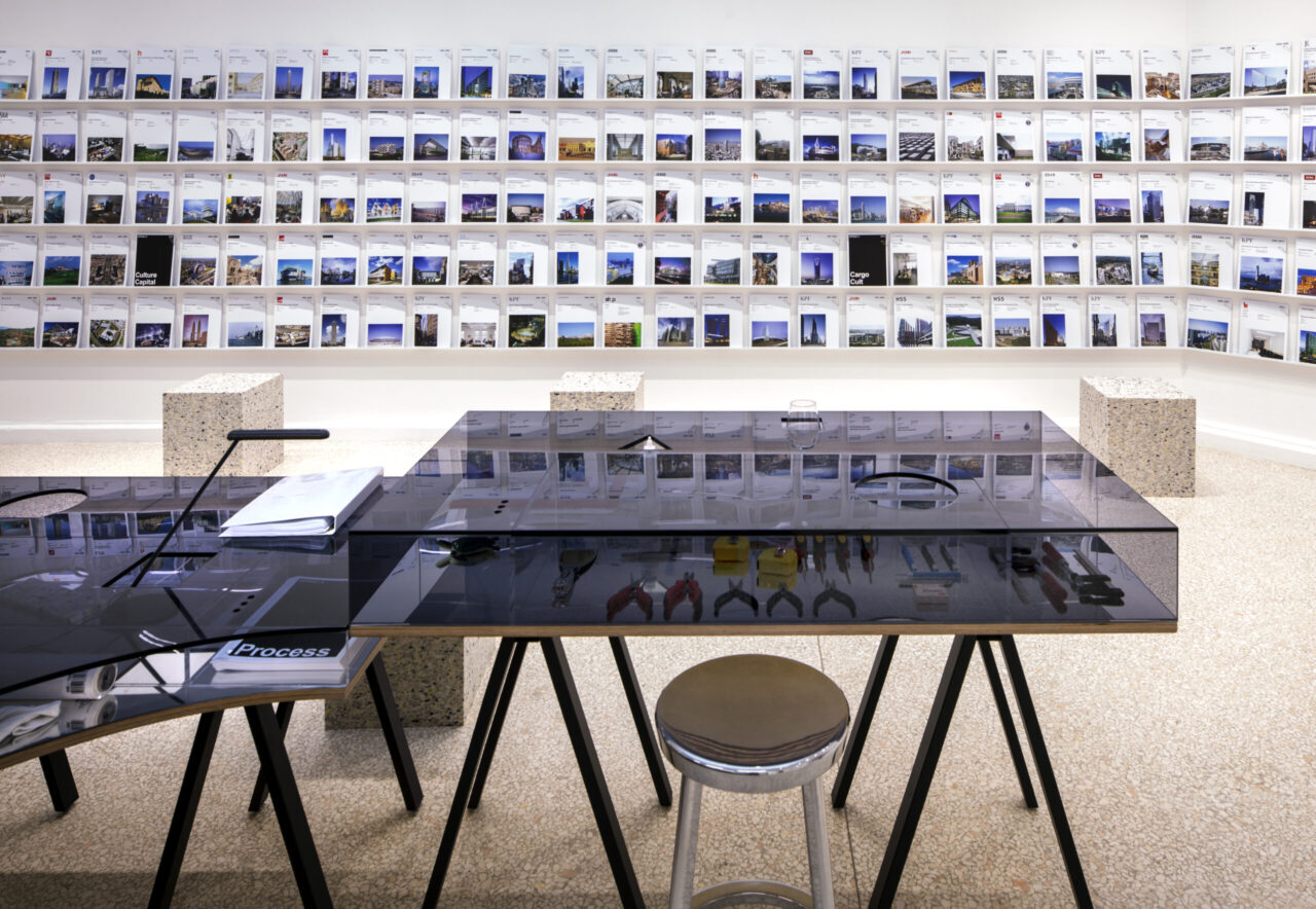 While recasting a number of elements that have together constituted the architectural office—from the drafting desk to the meeting table, the organizational chart, and the materials and project library—OfficeUS also rewired relationships between partners, clients, consultants, and critics. The OfficeUS Repository, which served as the library for both visitors and the live office, was presented neither as a definitive body of research nor as the final word on this history. With ideas serving in place of clients, and all of their interlocutors acting as potential double agents, the OfficeUS Partners examined the contemporary implications of global work through the complex and problematic history presented in the archive.