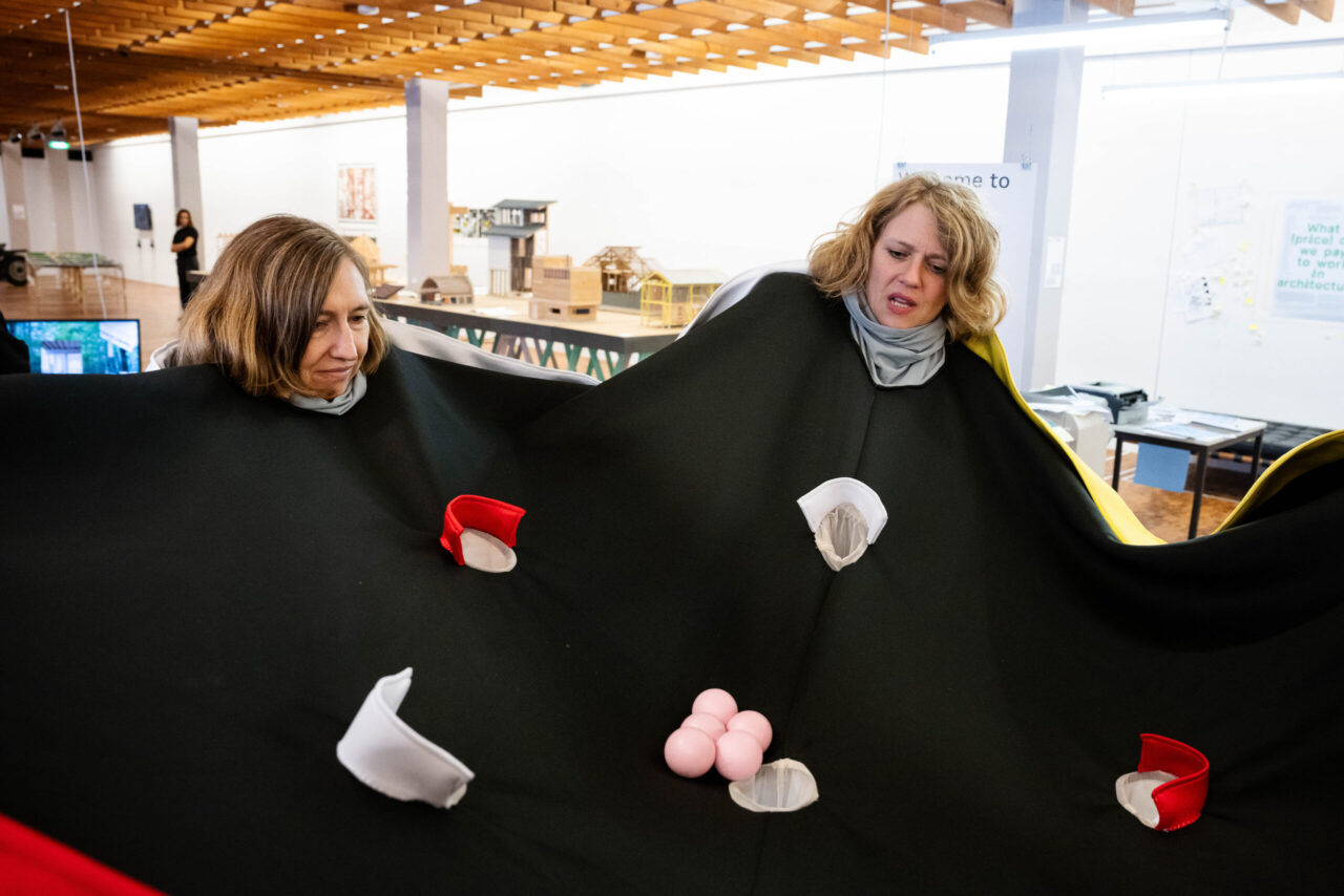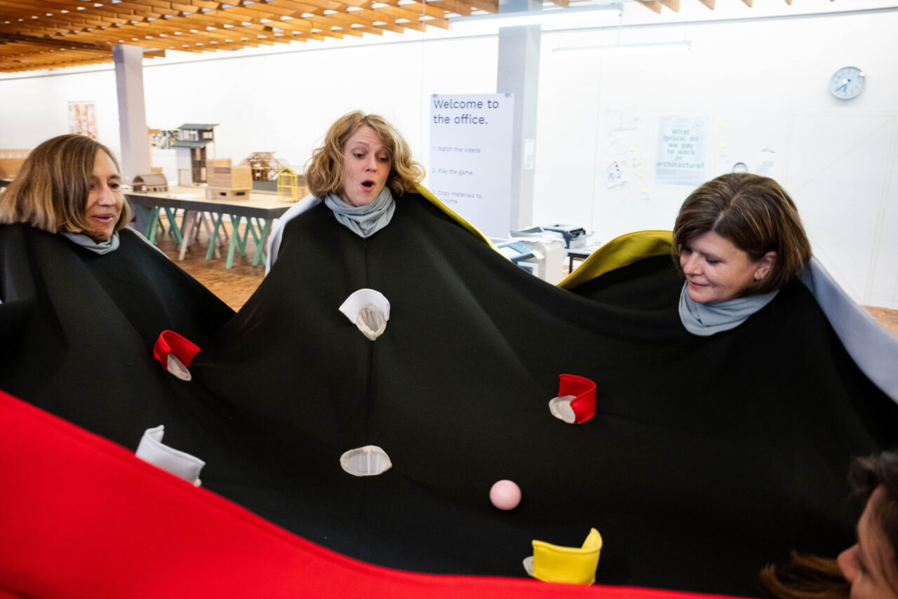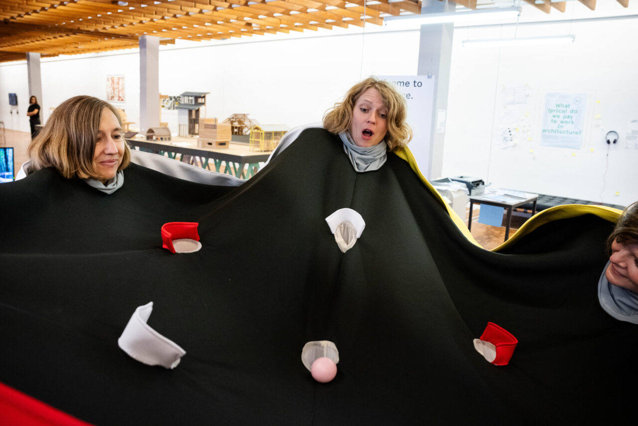 “The Great Repair” was an exhibition project launched in 2023 by ARCH+ in collaboration with the Akademie der Künste, Berlin, ETH Zürich, and the University of Luxembourg. The project explored repair as a design paradigm for architecture and urbanism, addressing resource consumption and the ecological crisis. It featured over 40 positions from art, architecture, and spatial practices and was accompanied by a two-volume publication and an event program. The premiere of the Great Repair was in in Berlin was from October 14, 2023, to January 14, 2024. Critical Broadcasting Lab presented the Balls for All game developed by students in the first Collective Architecture Studio, as an artefact whose creation and use were both in part directed at the “repair” of the pedagogical project of the design studio.