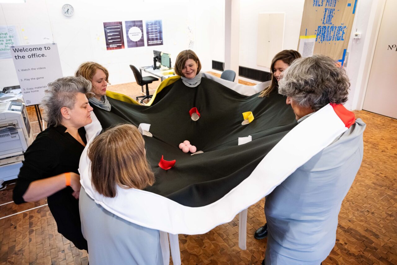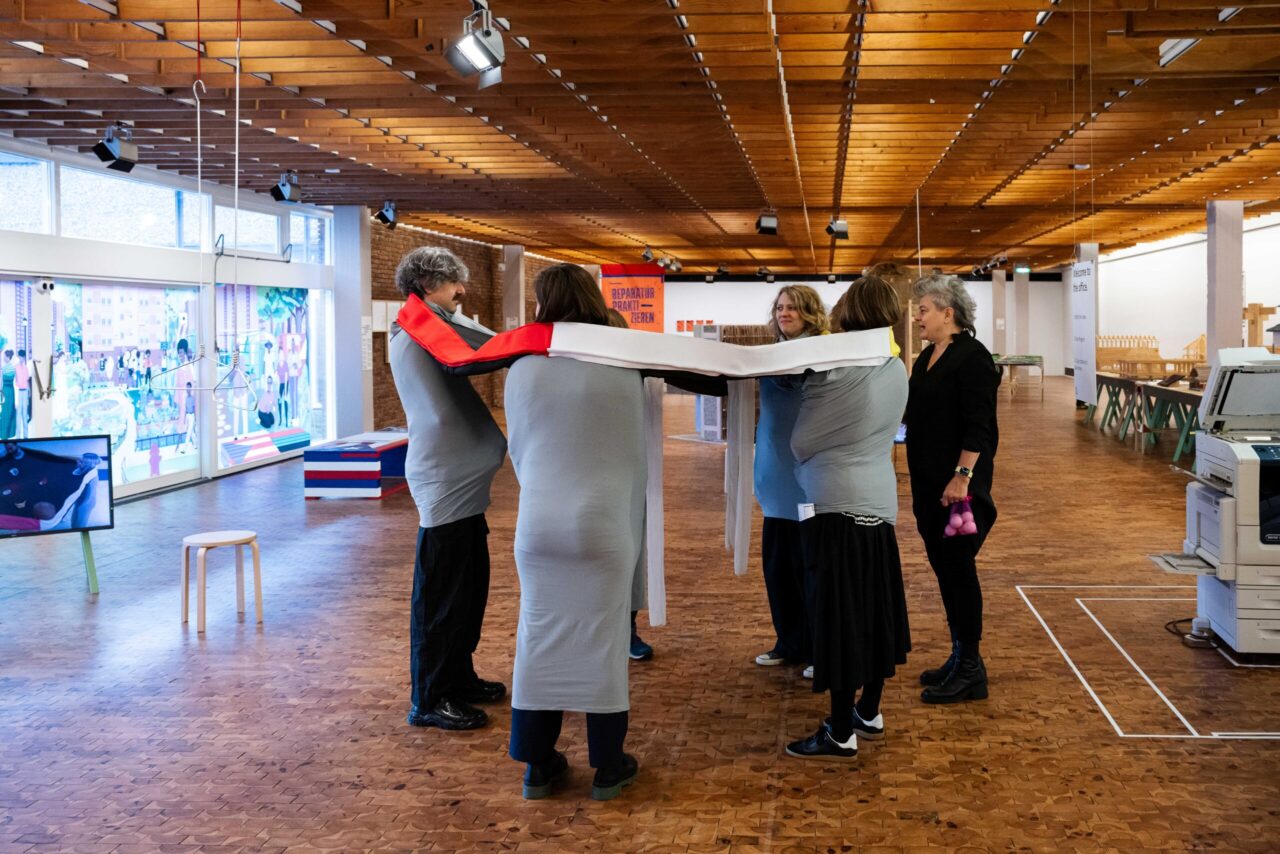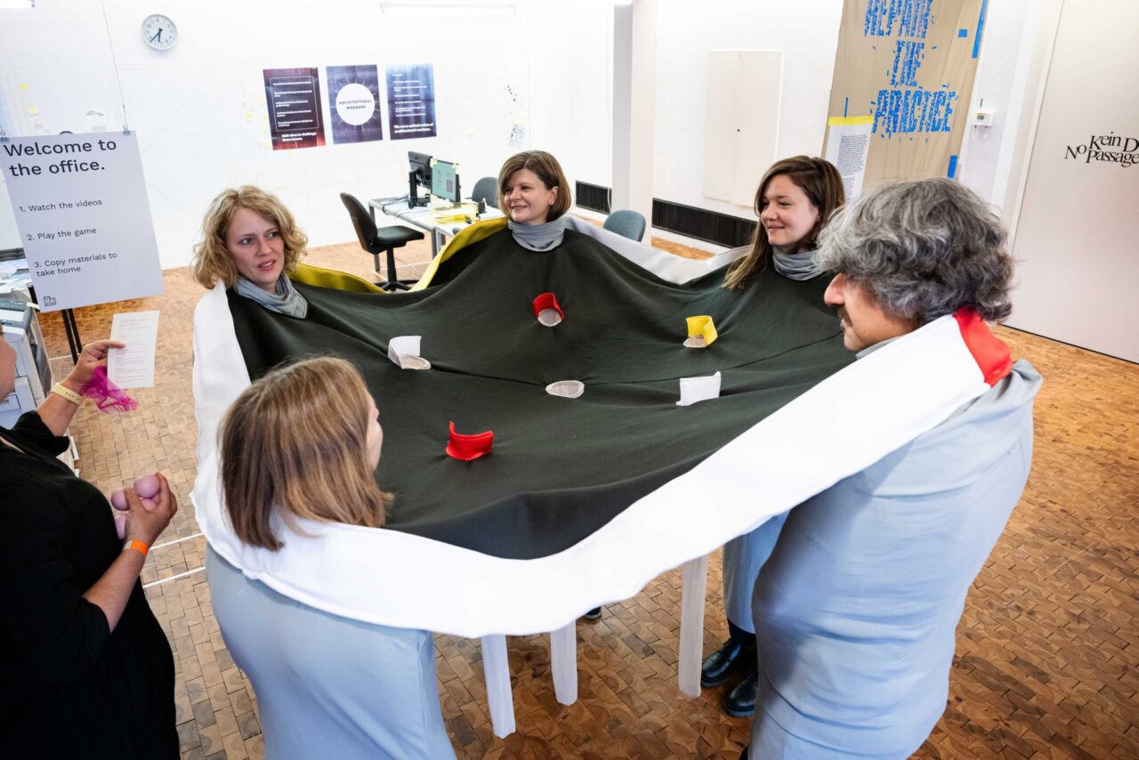 “The Great Repair” was an exhibition project launched in 2023 by ARCH+ in collaboration with the Akademie der Künste, Berlin, ETH Zürich, and the University of Luxembourg. The project explored repair as a design paradigm for architecture and urbanism, addressing resource consumption and the ecological crisis. It featured over 40 positions from art, architecture, and spatial practices and was accompanied by a two-volume publication and an event program. The premiere of the Great Repair was in in Berlin was from October 14, 2023, to January 14, 2024. Critical Broadcasting Lab presented the Balls for All game developed by students in the first Collective Architecture Studio, as an artefact whose creation and use were both in part directed at the “repair” of the pedagogical project of the design studio.