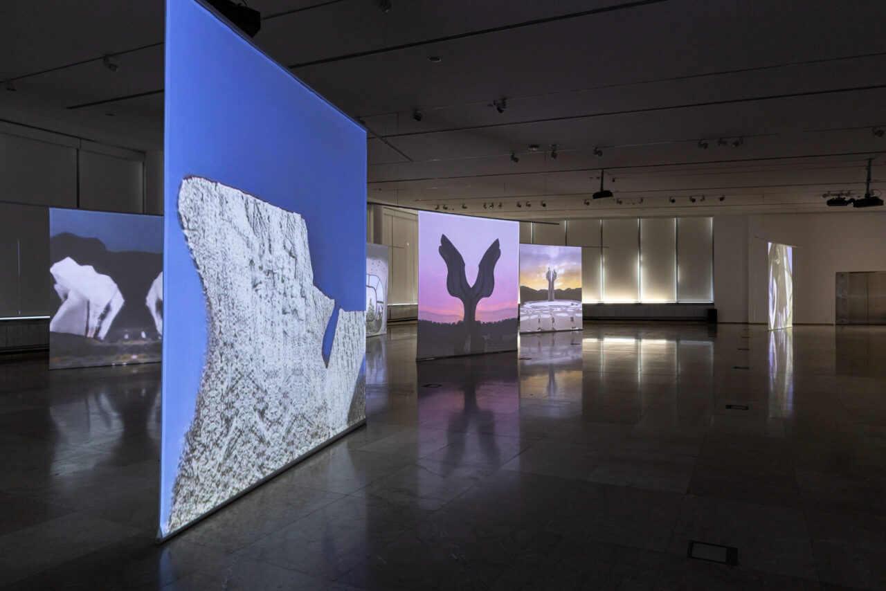 The Pilgrimage synthesizes “memories” from Yugoslavian elementary and high-school visits to these memorial monuments. It offers them in a shifting and spatial multi-channel video presentation accompanied by a non-linear documentary soundscape. We trained StyleGAN3 models on archival and individual photo documentation of the monuments to output a series of video interpolations based on them. The nine monuments currently included are but a sampling, chosen for their likelihood to have been visited by Yugoslavia’s youth up until 1991, and thus most prone to resonate with the messages of anti-fascism and national brotherhood. In offering its “synthesized memories” of the lessons for the future that the original memorials were meant to carry, The Pilgrimage also presents anti-fascism and unity as political and activist positions available (and necessary) today.